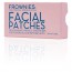 Del opp Frownies plasteret ved å forsiktig rive langs perforeringen. Rens ansiktet grundig, skyll og tørk ansiktet. Hvis du bruker en fuktighetskrem, la den absorbere inn i huden før du påfører Frownies. Masser linjer i ansiktet med fingertuppene i 10 sekunder for å stimulere blodsirkulasjonen. Fukt den blanke siden av Frownies med Rosewater Hydrator Spray eller vann for å aktivere den stivelse-basert limen. Ved hjelp av to fingre på den ene hånden, glatt huden din mens du trykker Frownies på med fingrene på den andre hånden. Holdes på plass til plsteret har festet seg. Ha det på i minst tre timer, men helst over natten. For å ta det vekk, grundig bløtlegge plasteret slik at limet slipper tak.